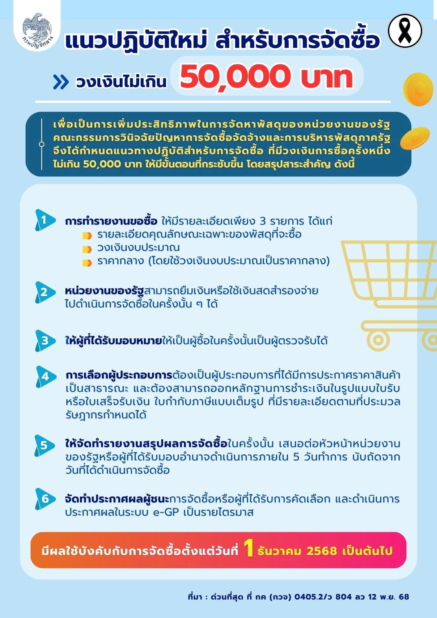 แนวทางปฏิบัติสำหรับการจัดซื้อ ที่มีวงเงินการซื้อครั้งหนึ่ง ไม่เกิน 50,000 บาท